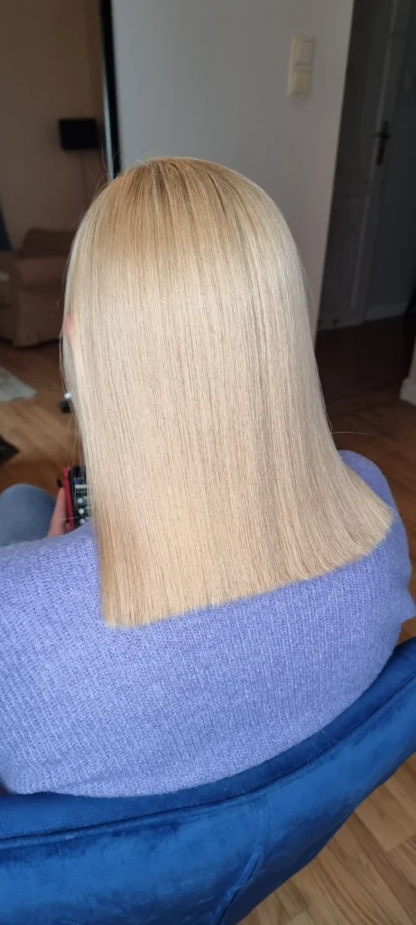 Daje rewelacyjny efekt zdrowych, prostych, pięknie lśniących włosów, wzmacnia je, efekt utrzymuje się do 10 miesięcy a nawet dłużej.